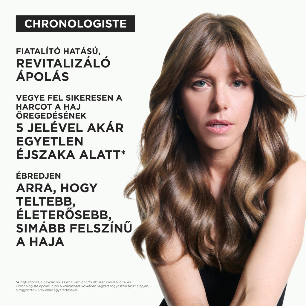 A Kérastase Chronologiste Overnight Youth szérum egy Pro-Xylane™ hatóanyaggal és Ochrophytina algákkal gazdagított öregedésgátló éjszakai ápoló kezelés, amely az éjszaka folyamán segít felvenni a harcot az öregedés látható jelei ellen.