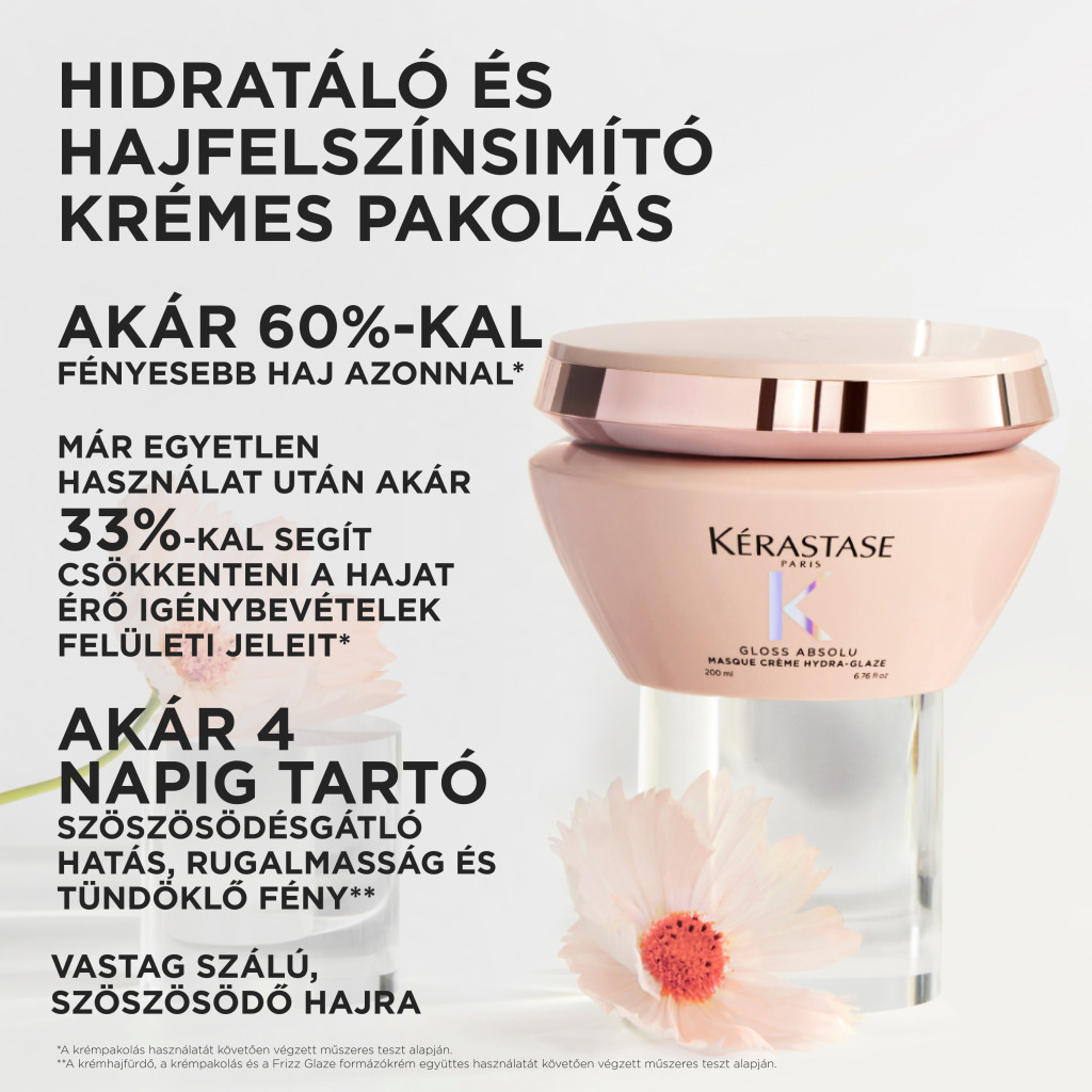 A Kérastase Masque Crème Hydra-Glaze pakolása egy hidratáló és hajfelszínsimító krémes pakolás – vastag szálú, szöszösödő hajra.